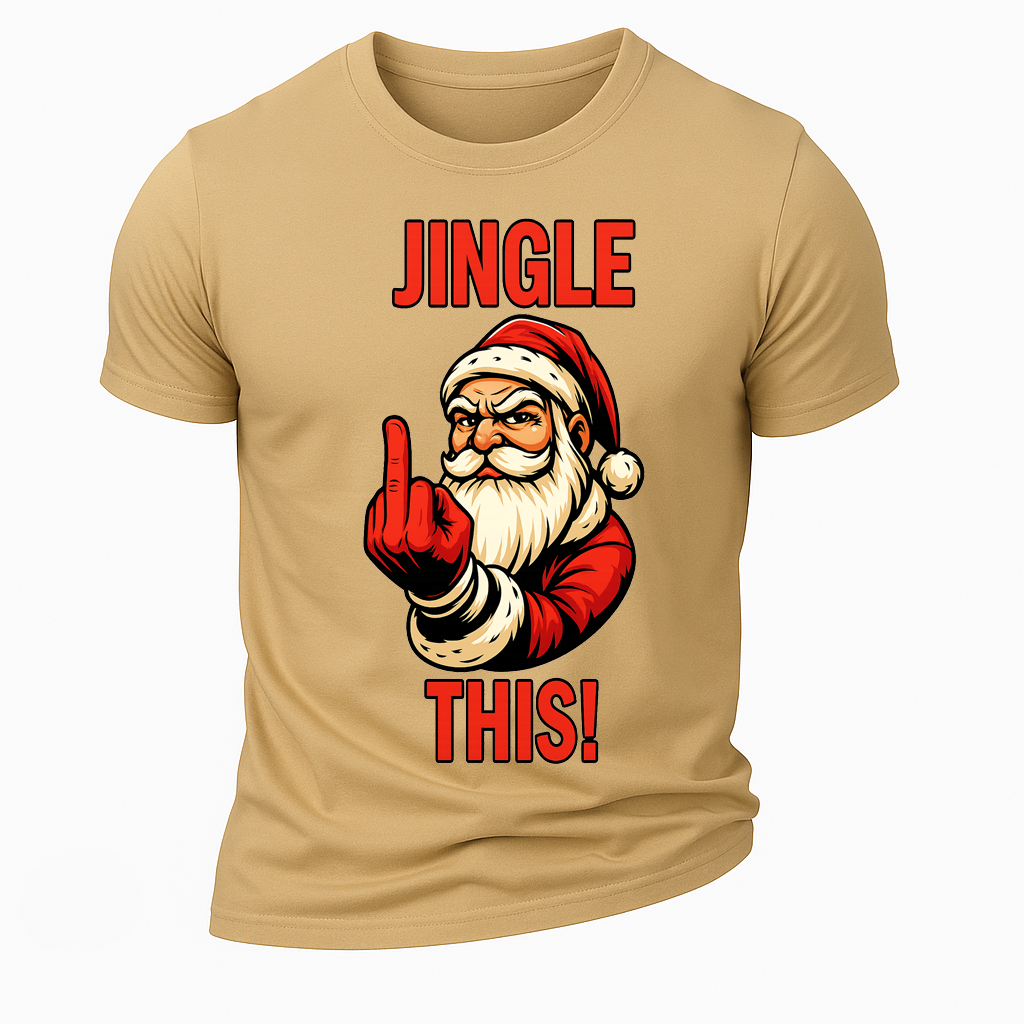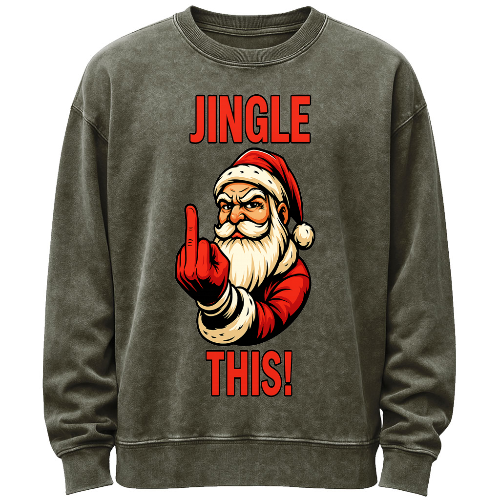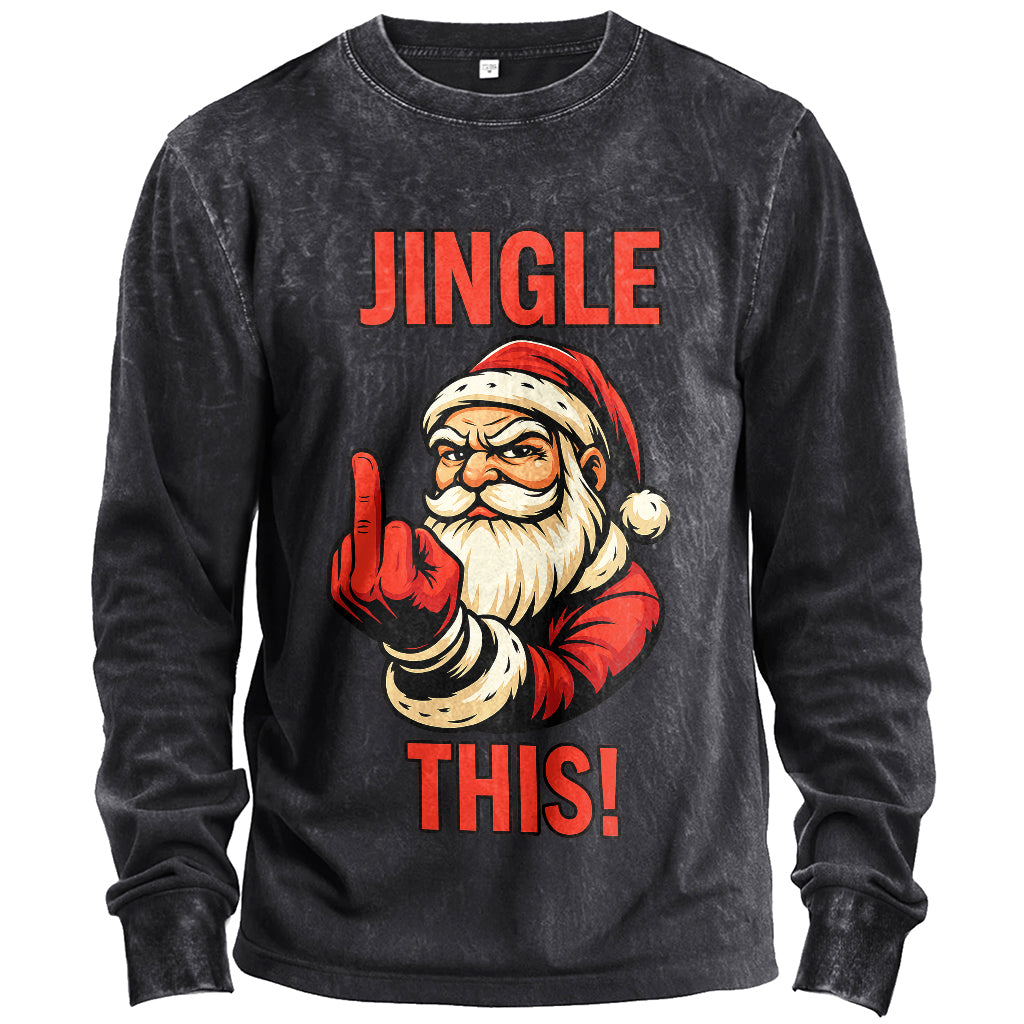 Precio regular $24.99 USDSpicy holiday attitude with a vintage vibe. This men’s long-sleeve T-shirt pairs an army-green vintage wash with an irreverent Santa graphic and bold “JINGLE THIS!” text—perfect for parties and laid-back winter fits.