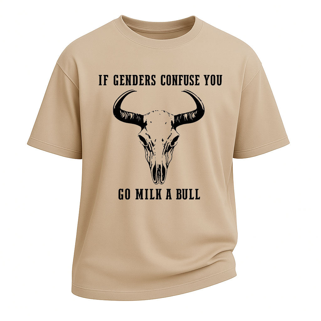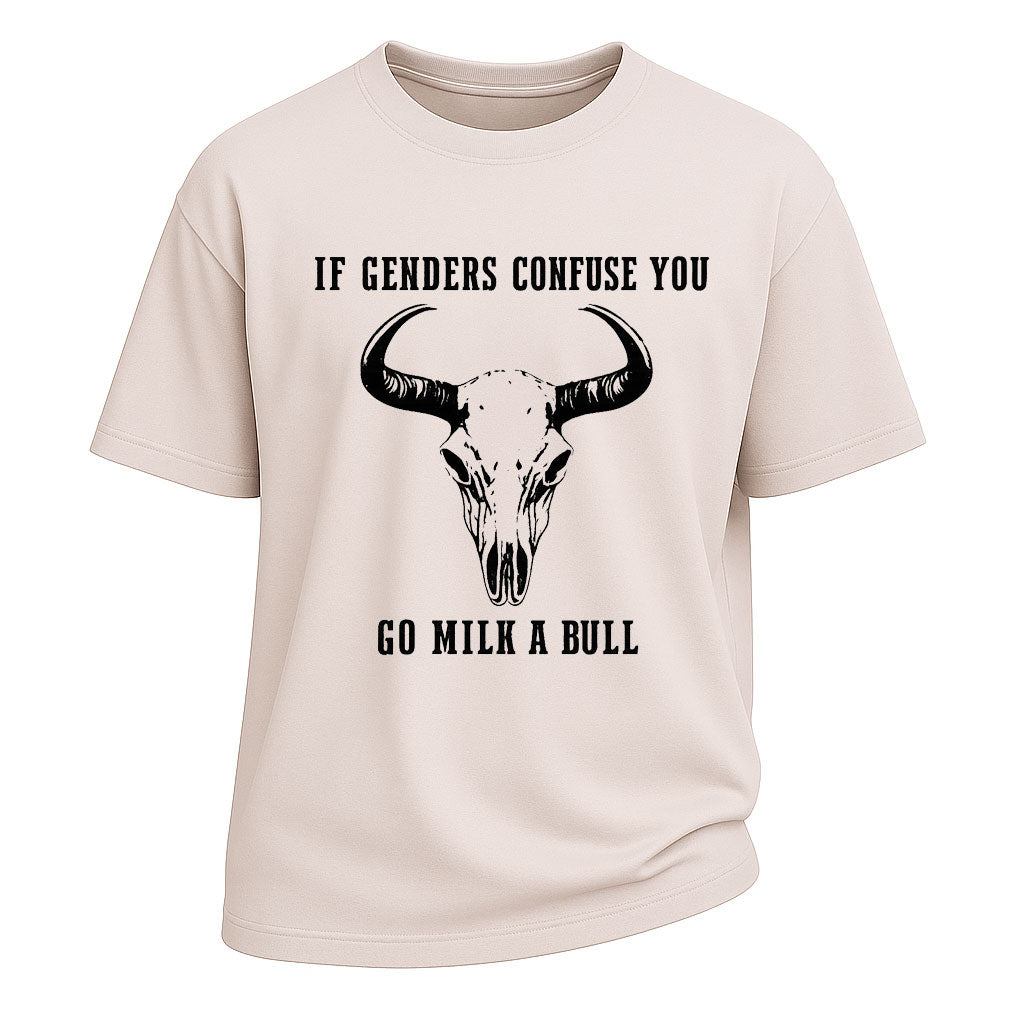 Precio regular $26.99 USDDaring, bold, and unapologetic — the LouMark "Go Milk a Bull" t-shirt is made for those who wear humor with a sharp edge. Featuring a rugged bull skull graphic paired with a sarcastic slogan, this tee embodies the raw spirit of western toughness and cowboy humor. Crafted from 260G heavy-weight 100% cotton, it offers a structured oversized fit, perfect for casual streetwear or western events.
