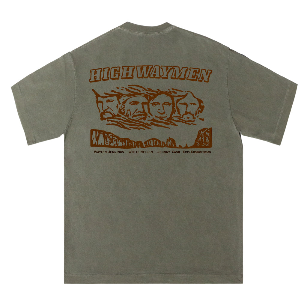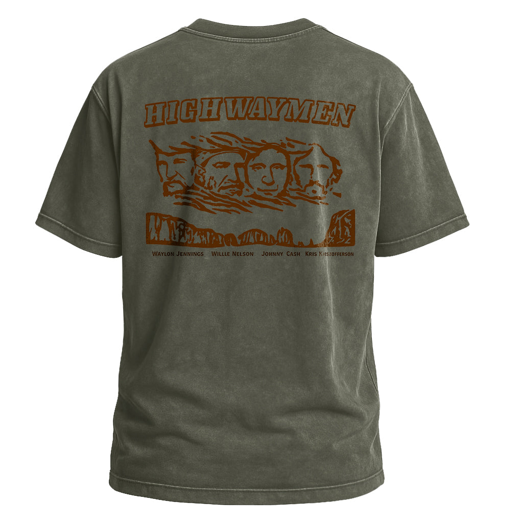 Precio regular $26.99 USDPay tribute to the legendary Highwaymen with LouMark’s Highwaymen Mount Rushmore Tee. This washed brown shirt features a vintage-style back graphic inspired by Mount Rushmore with stylized portraits of the iconic Texas country artists, accented by the text “HIGHWAYMEN” and subtle details. Made from 100% cotton for comfortable, everyday wear.