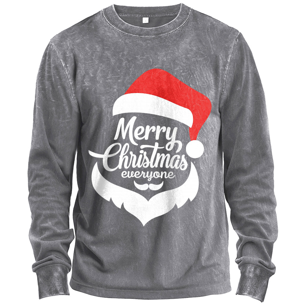 Precio regular $24.99 USDClassic holiday cheer with a lived-in feel. This men’s long-sleeve T-shirt pairs a vintage-wash army-green body with a bold Santa hat & beard graphic framing the words “Merry Christmas everyone.” Built for crisp DTG prints and everyday comfort.