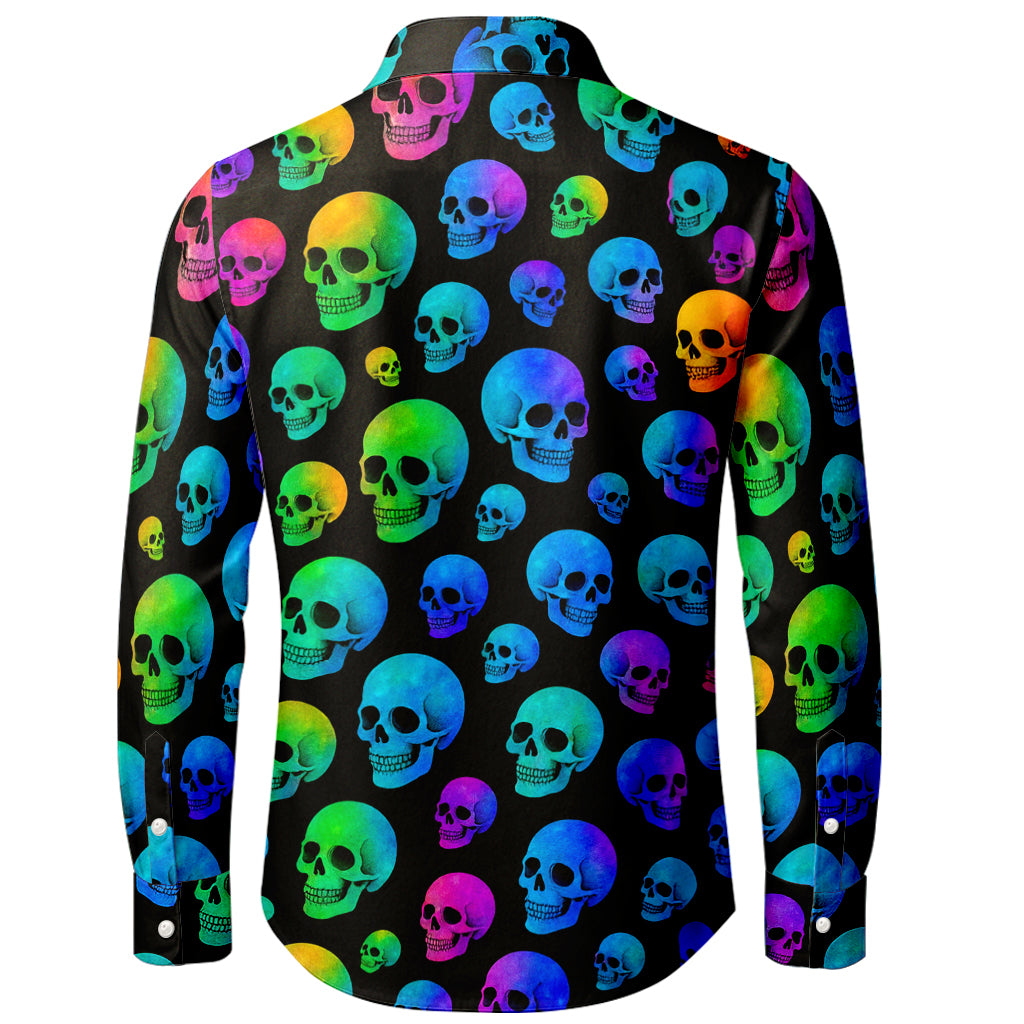 Neon Rainbow Skulls 3D Print Long-Sleeve Shirt