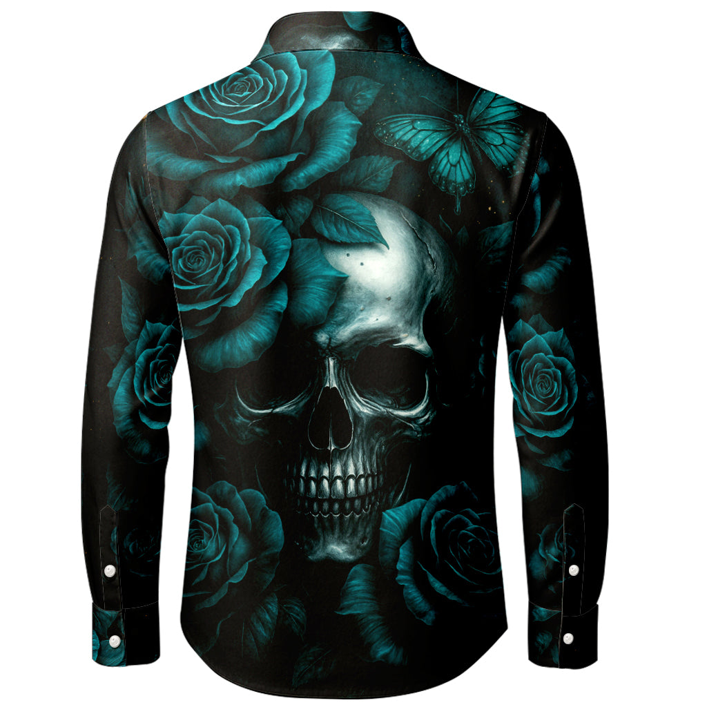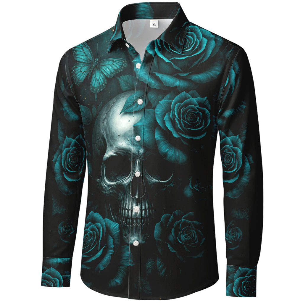 Teal Roses & Skull 3D Print Long-Sleeve Shirt