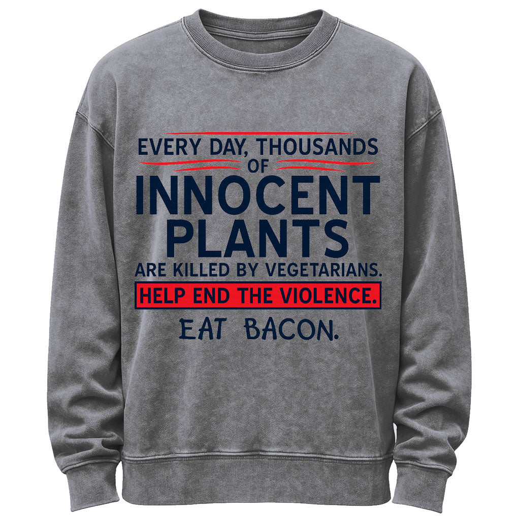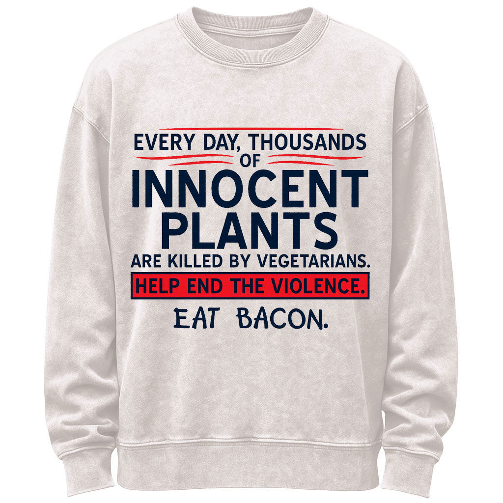 Every day, thousands of plants die — help end the violence. Eat bacon, laugh louder, and live unfiltered.