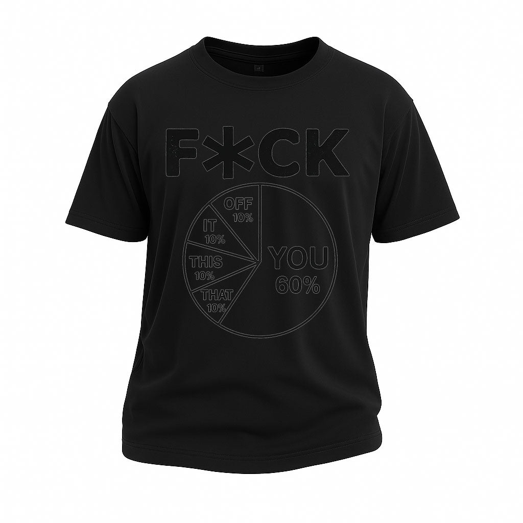 Precio regular $22.99 USDWhen subtlety isn’t on the agenda, this shirt delivers the message in bold, unapologetic fashion. Featuring a pie chart breakdown of everyone's favorite four-letter word—with 60% reserved for "YOU"—this tee brings sarcasm, wit, and dark humor into one powerful visual. It's made for men who speak their truth with confidence and a touch of chaos.