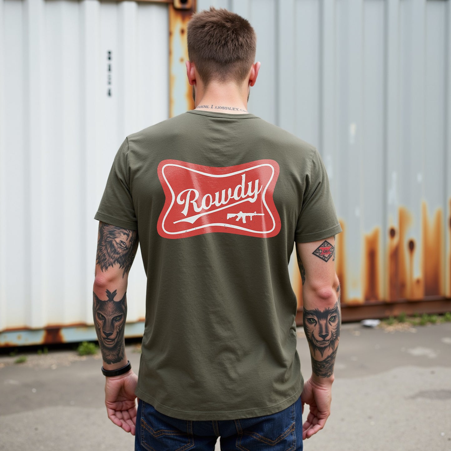 Precio regular $26.99 USDBring the bold spirit of the West to your wardrobe with LouMark’s Rowdy Graphic Tee. This washed brown shirt features a vintage-style back graphic with a red frame and the word “Rowdy” written in stylized white script, accompanied by a small rifle illustration. Crafted from 100% cotton for comfortable, casual wear with rugged attitude.