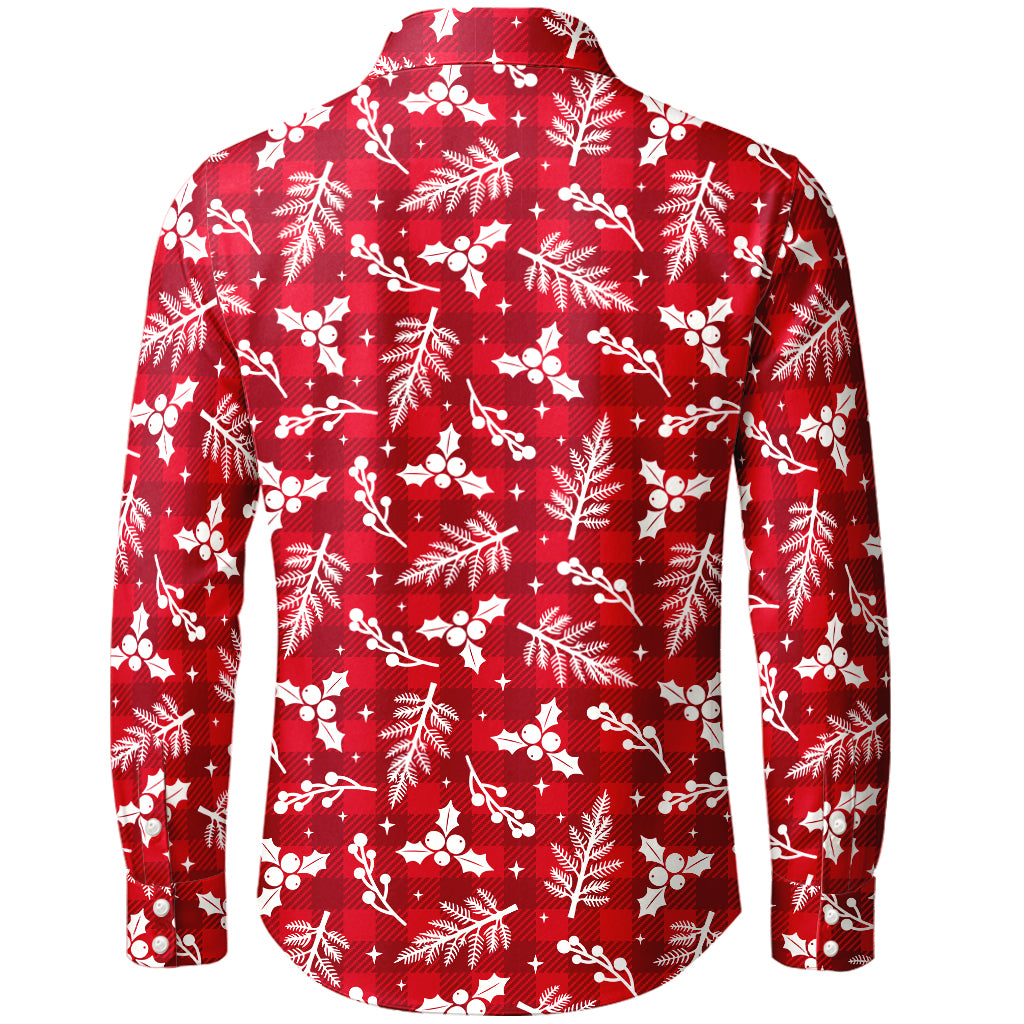 Red Plaid Holly & Pine Long-Sleeve Christmas Shirt