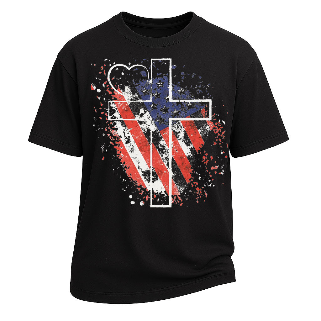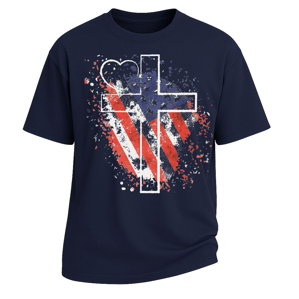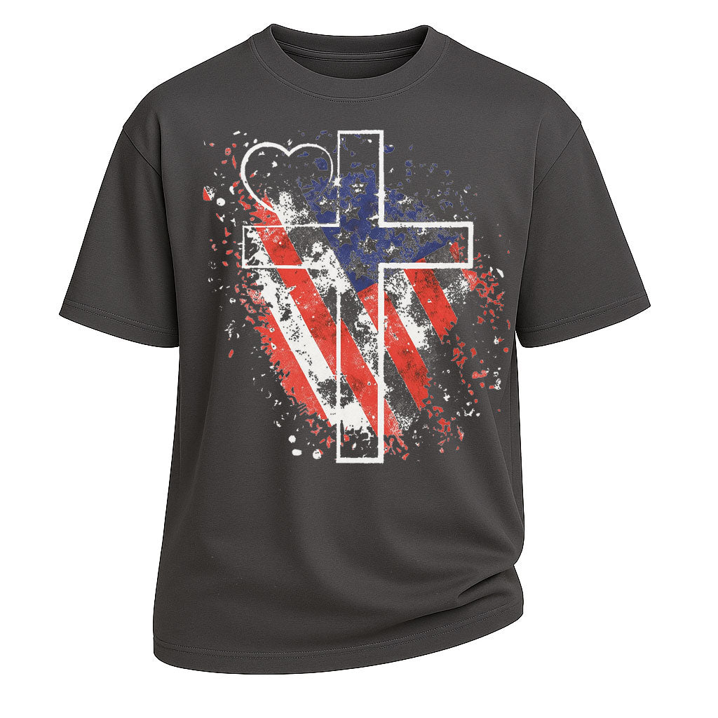 Prix régulier $26.99 USDShow your faith and patriotism with LouMark’s Faith and Freedom Cross Tee. Made from heavy 260G 100% cotton and designed in an oversized fit, this shirt blends durability with everyday comfort. The bold graphic features a cross overlayed with the American flag in red, white, and blue, symbolizing unity of faith and country. Perfect for church gatherings, national holidays, or casual wear that carries deeper meaning.
