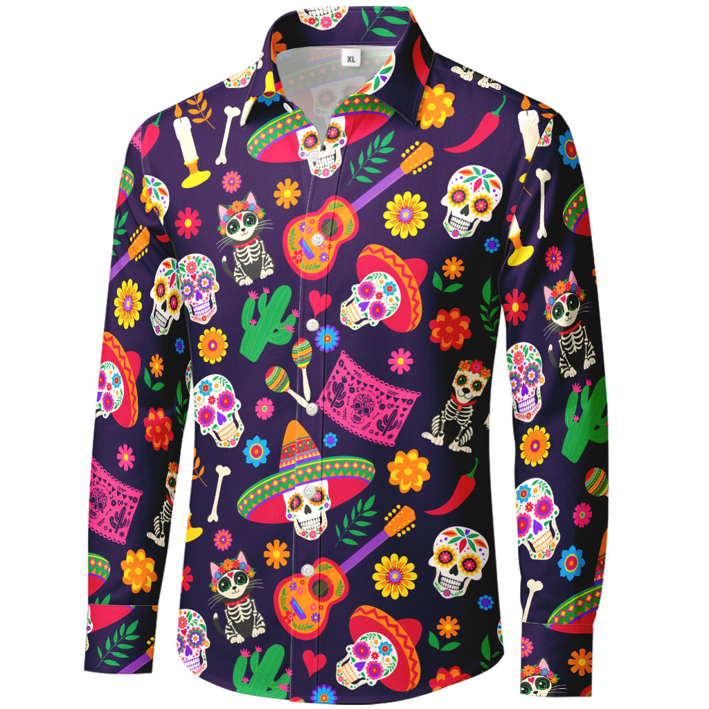 Day of the Dead Fiesta Print Long-Sleeve Shirt