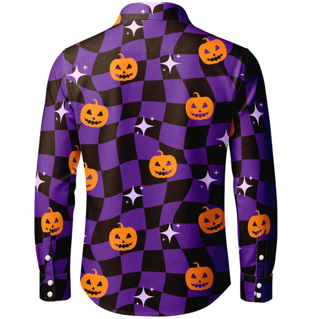 Wavy Checker Jack-O’-Lantern Long-Sleeve Shirt