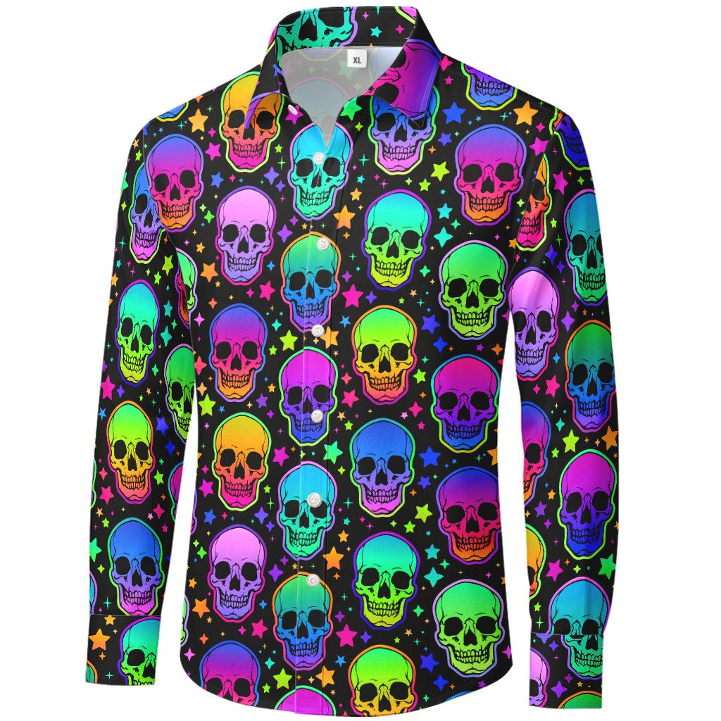 Neon Rainbow Skulls Long-Sleeve Shirt