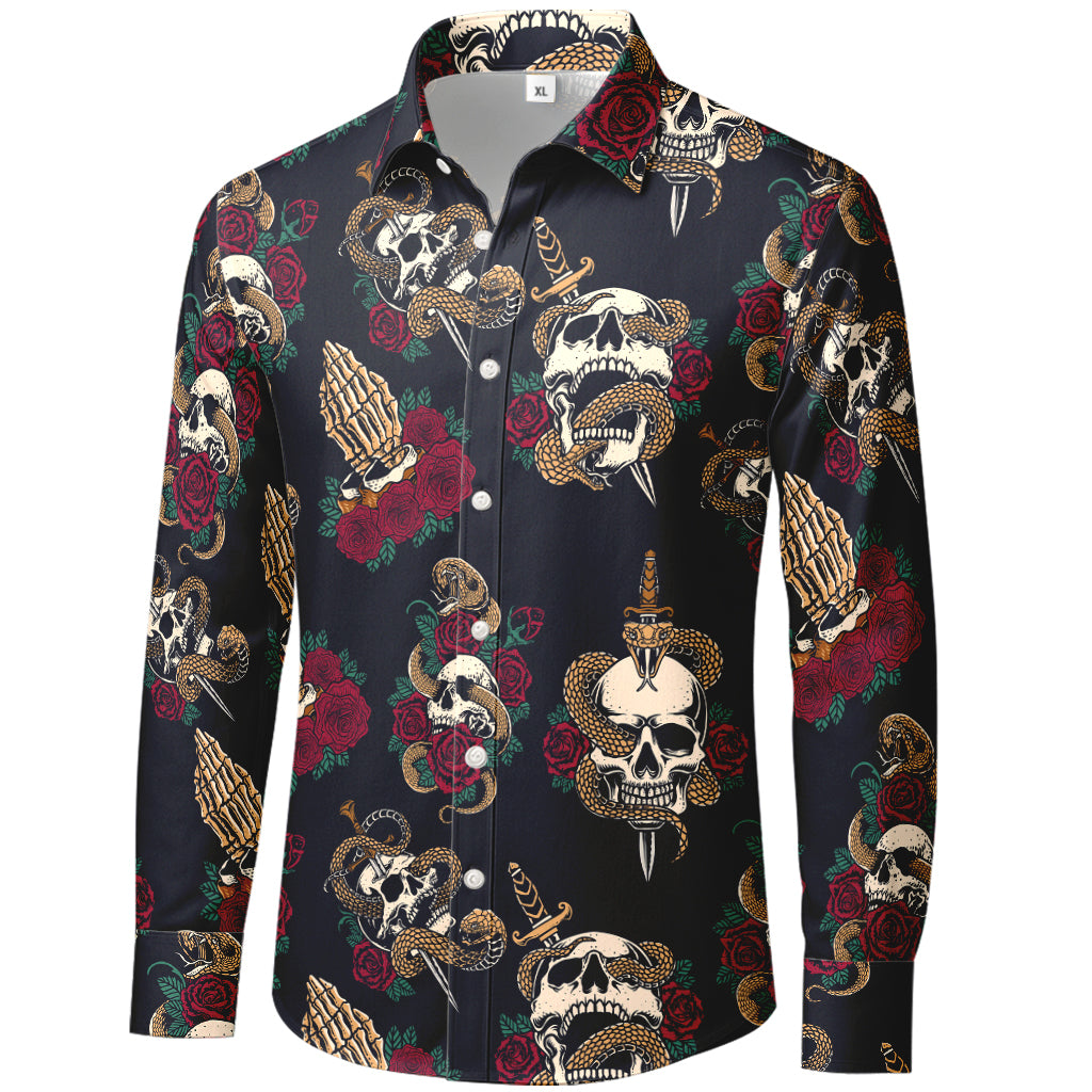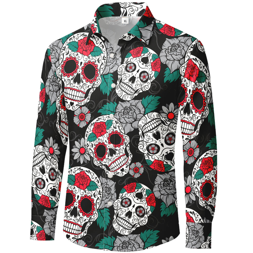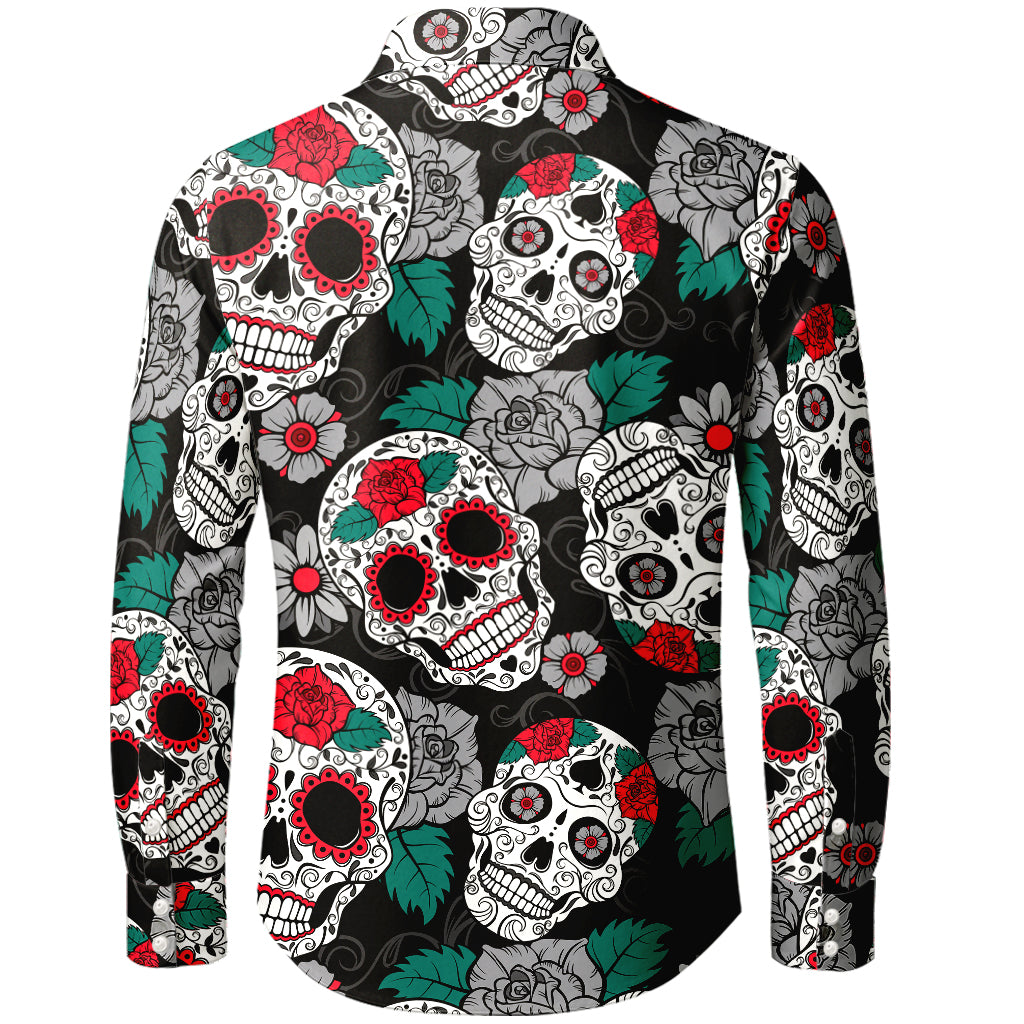Sugar Skull & Red Rose Long-Sleeve Shirt