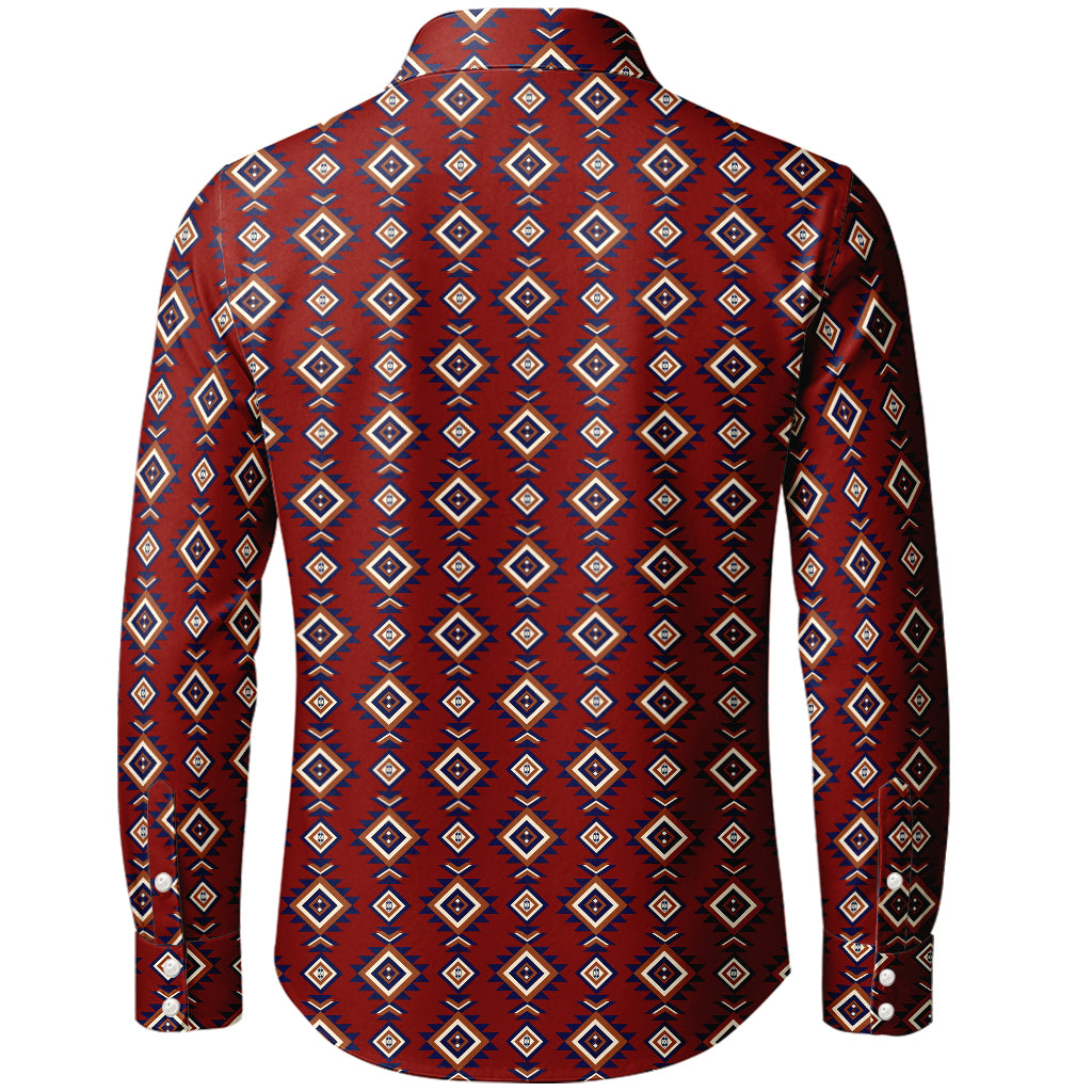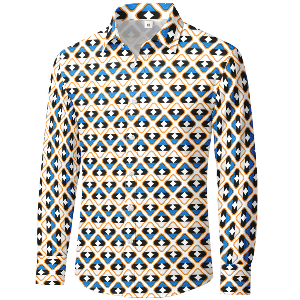 Retro Diamond Geo Print Long-Sleeve Shirt