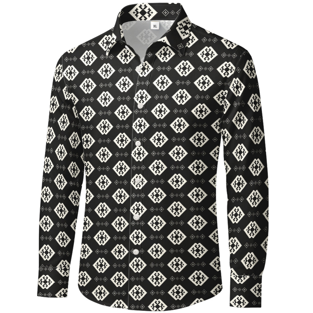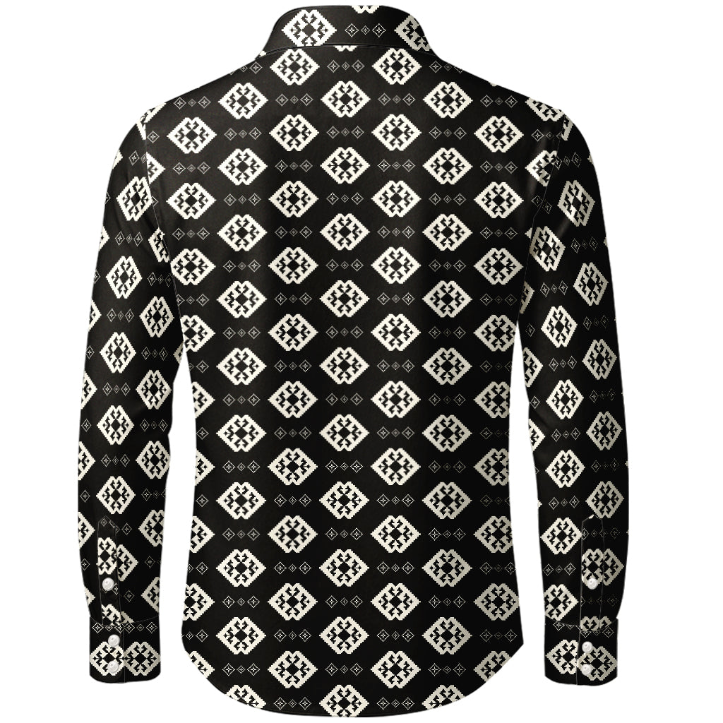 Black & Ivory Aztec Diamond Print Long-Sleeve Shirt