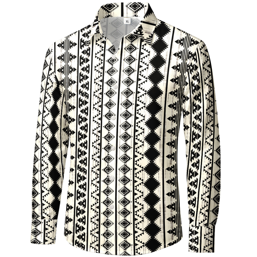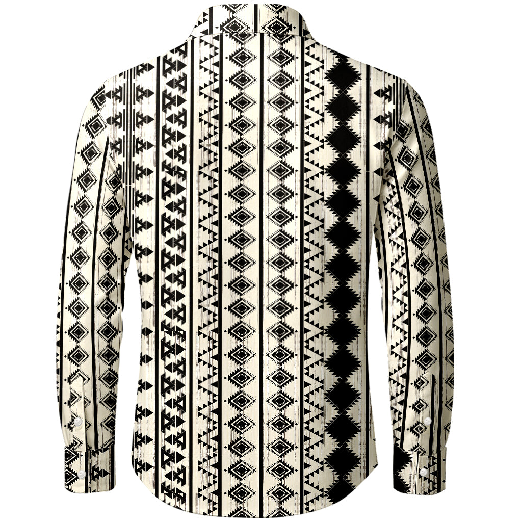 Monochrome Aztec Stripe 3D Print Long-Sleeve Shirt