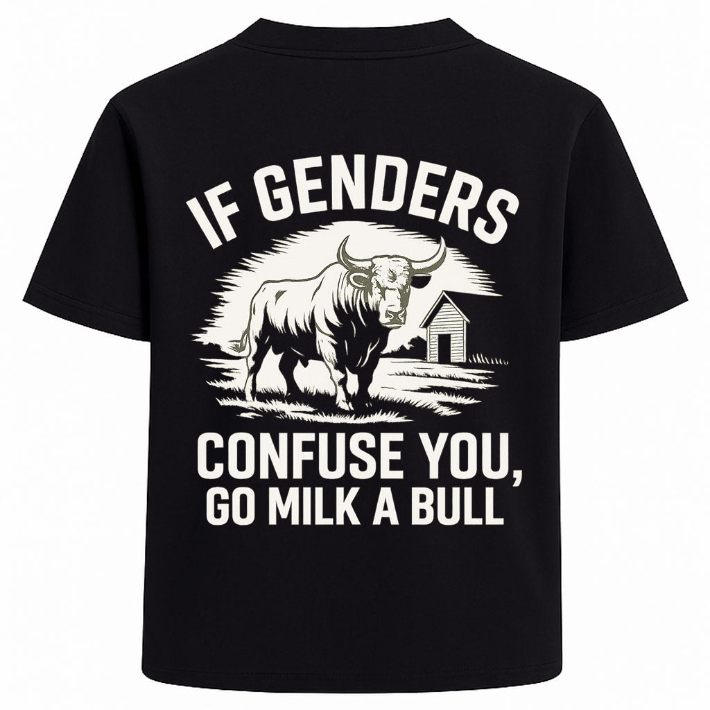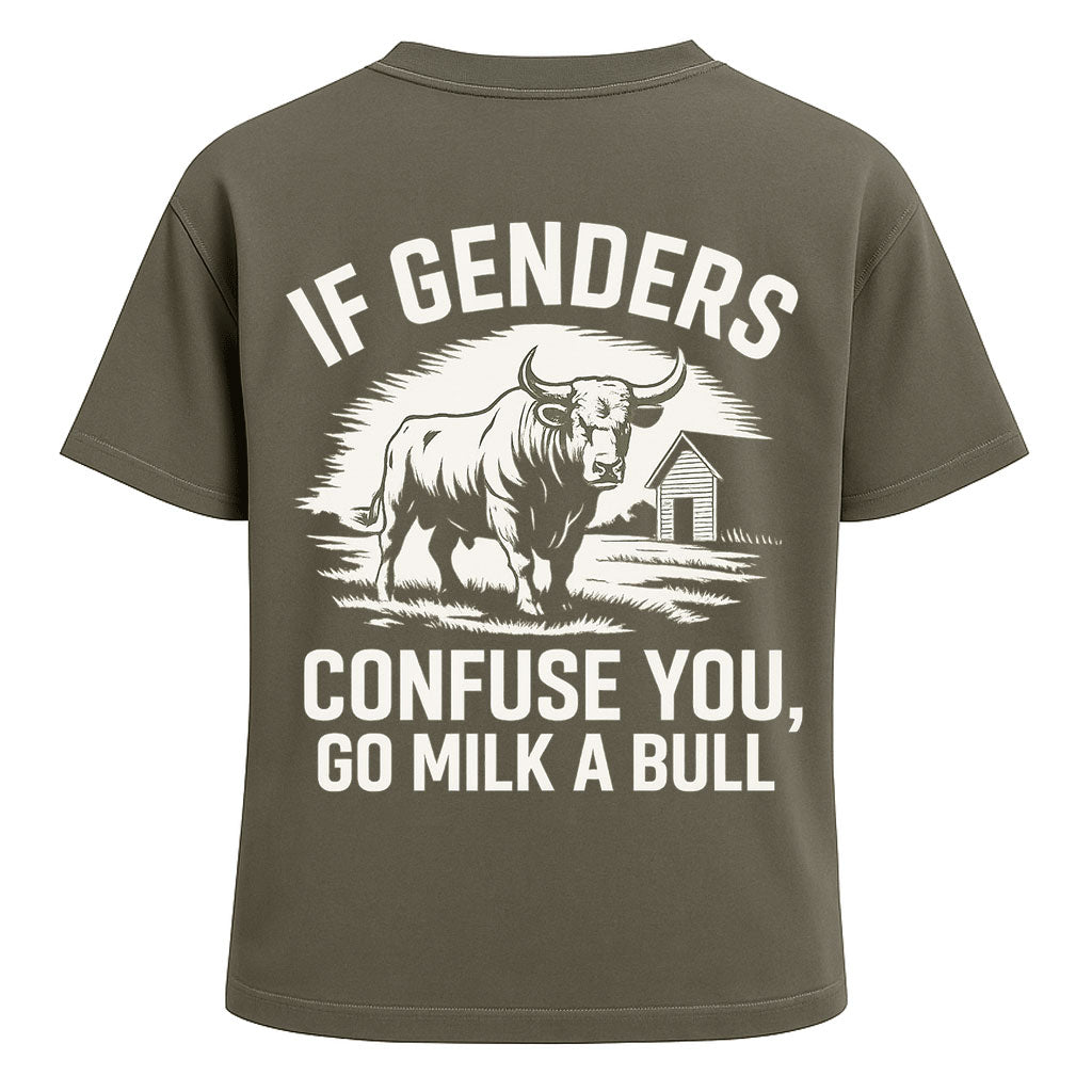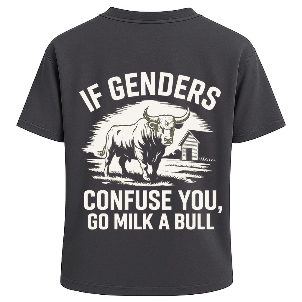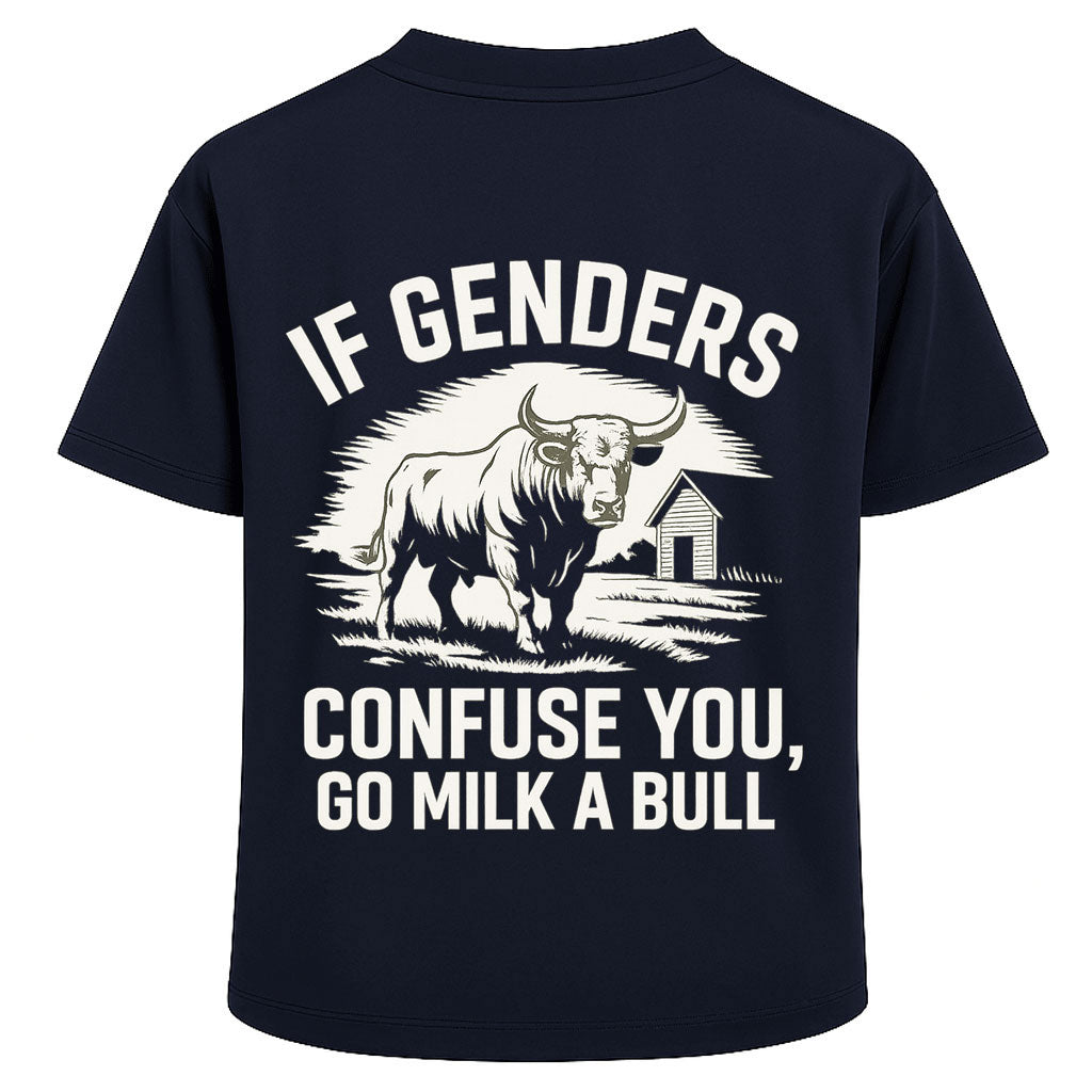 Maglietta grafica con satira di genere "Go Milk a Bull"