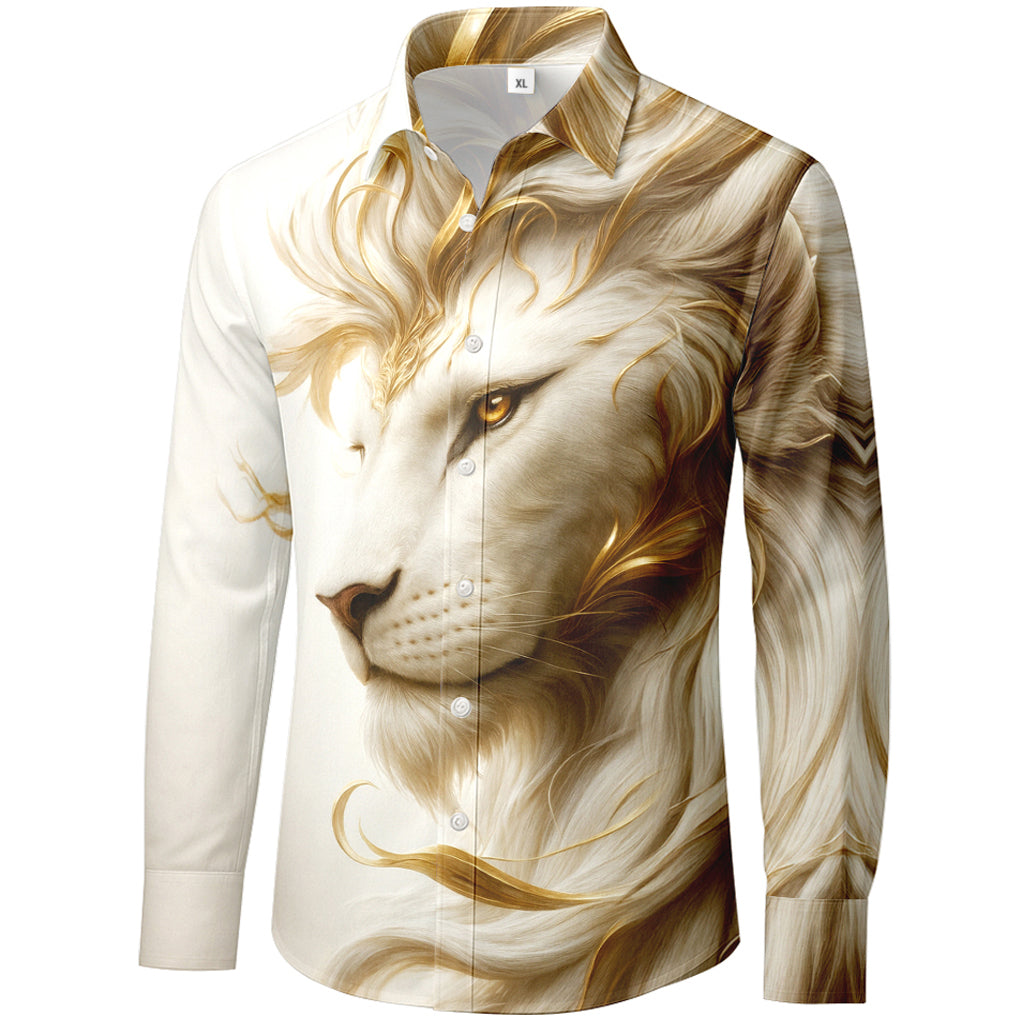 Maglietta a maniche lunghe con stampa 3D leone avorio e oro