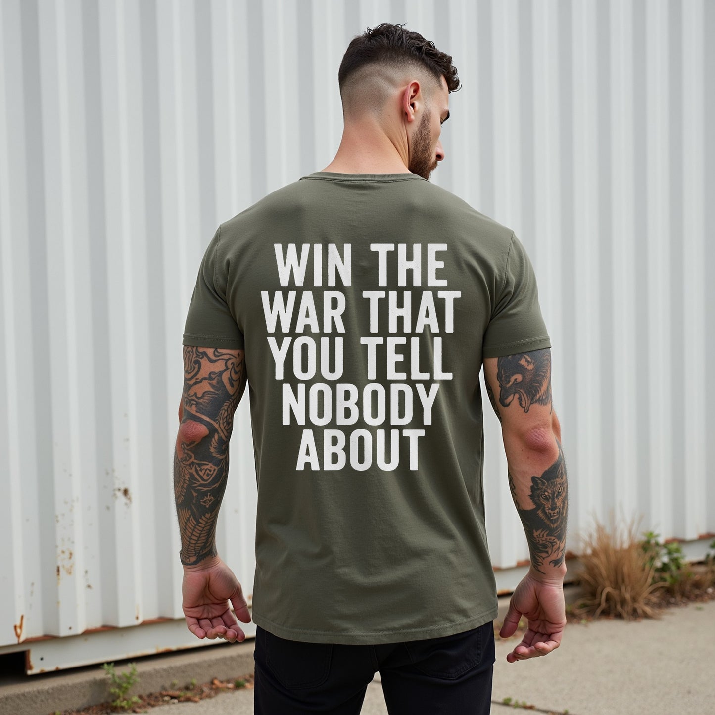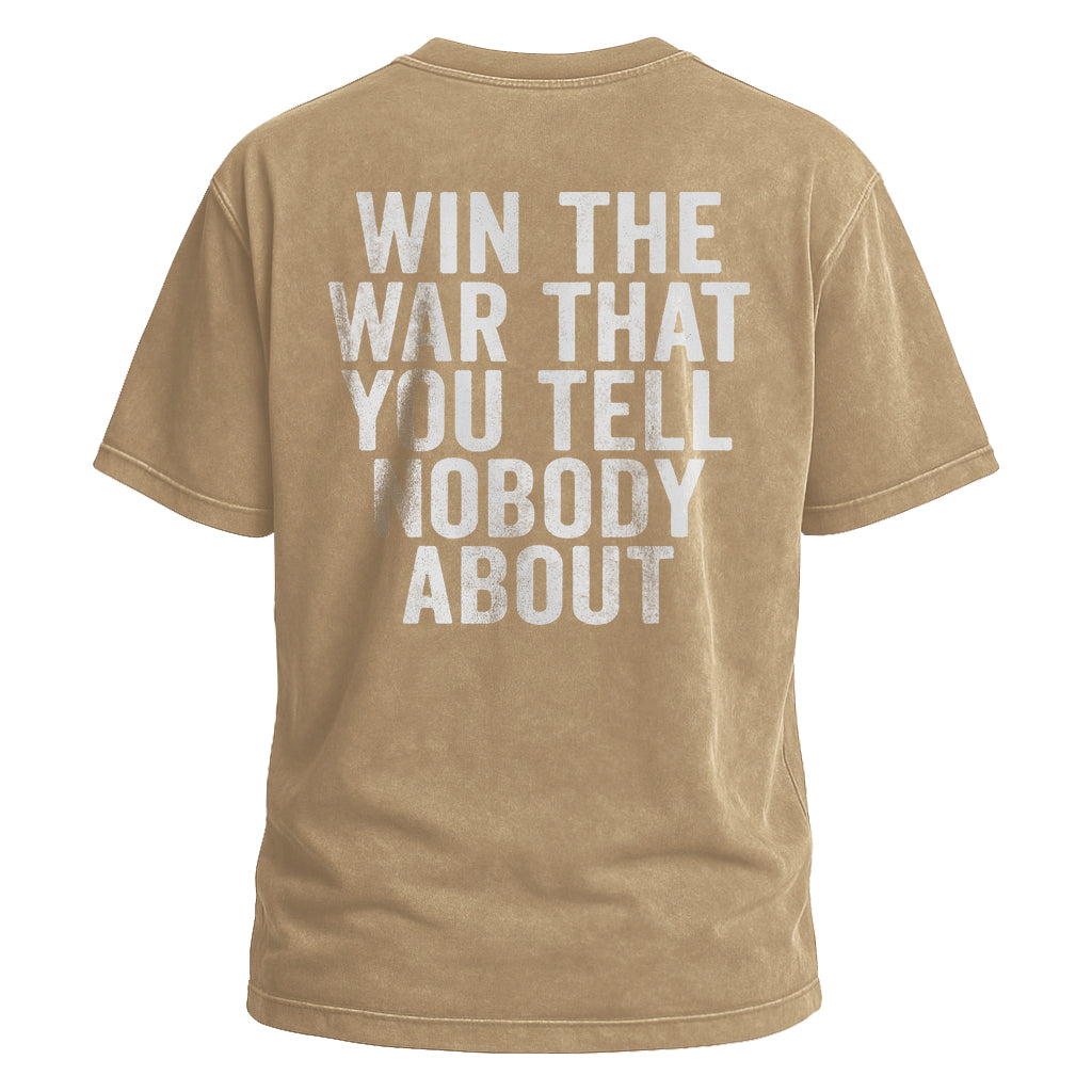Prezzo normale $26.99 USDFai una dichiarazione audace con la maglietta Win the War di LouMark. Questa maglietta marrone slavato presenta una grande scritta bianca sul retro che recita "WIN THE WAR THAT YOU TELL NOBODY ABOUT". Realizzata in 100% cotone, è comoda e casual, con un atteggiamento forte e risoluto.