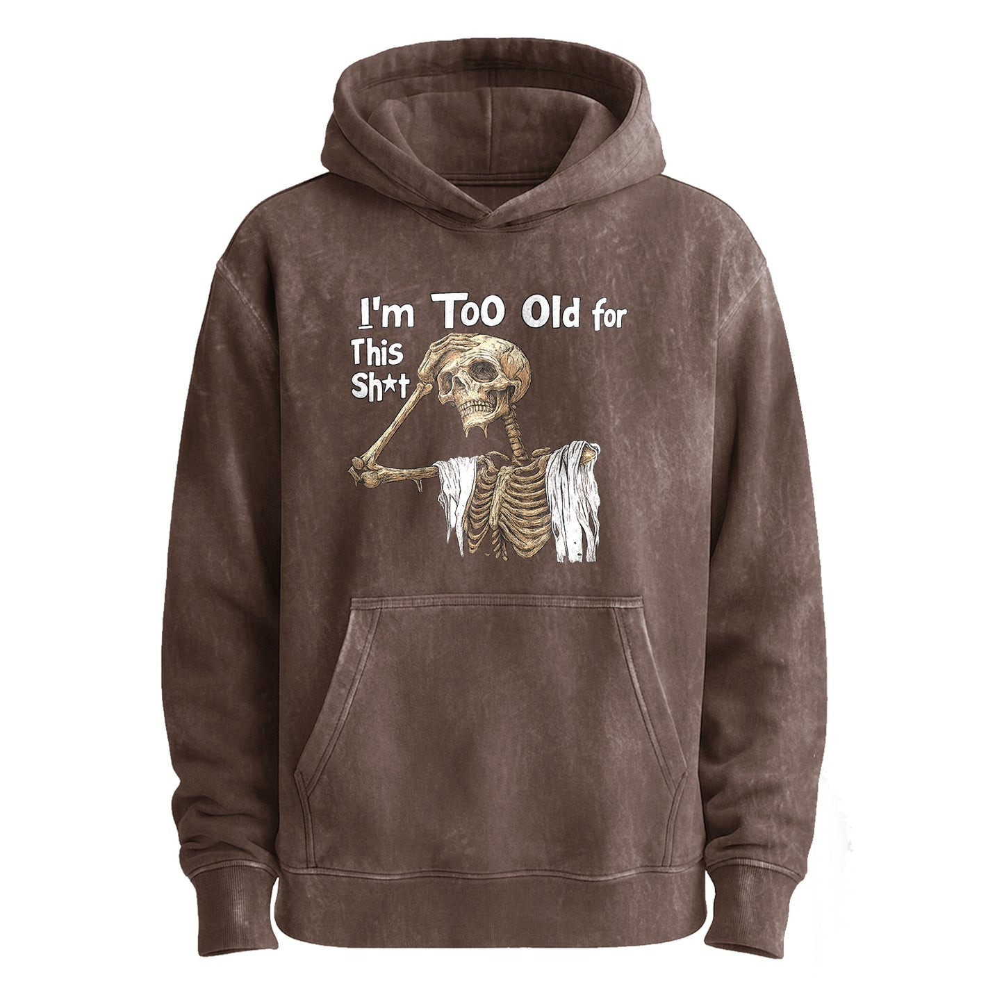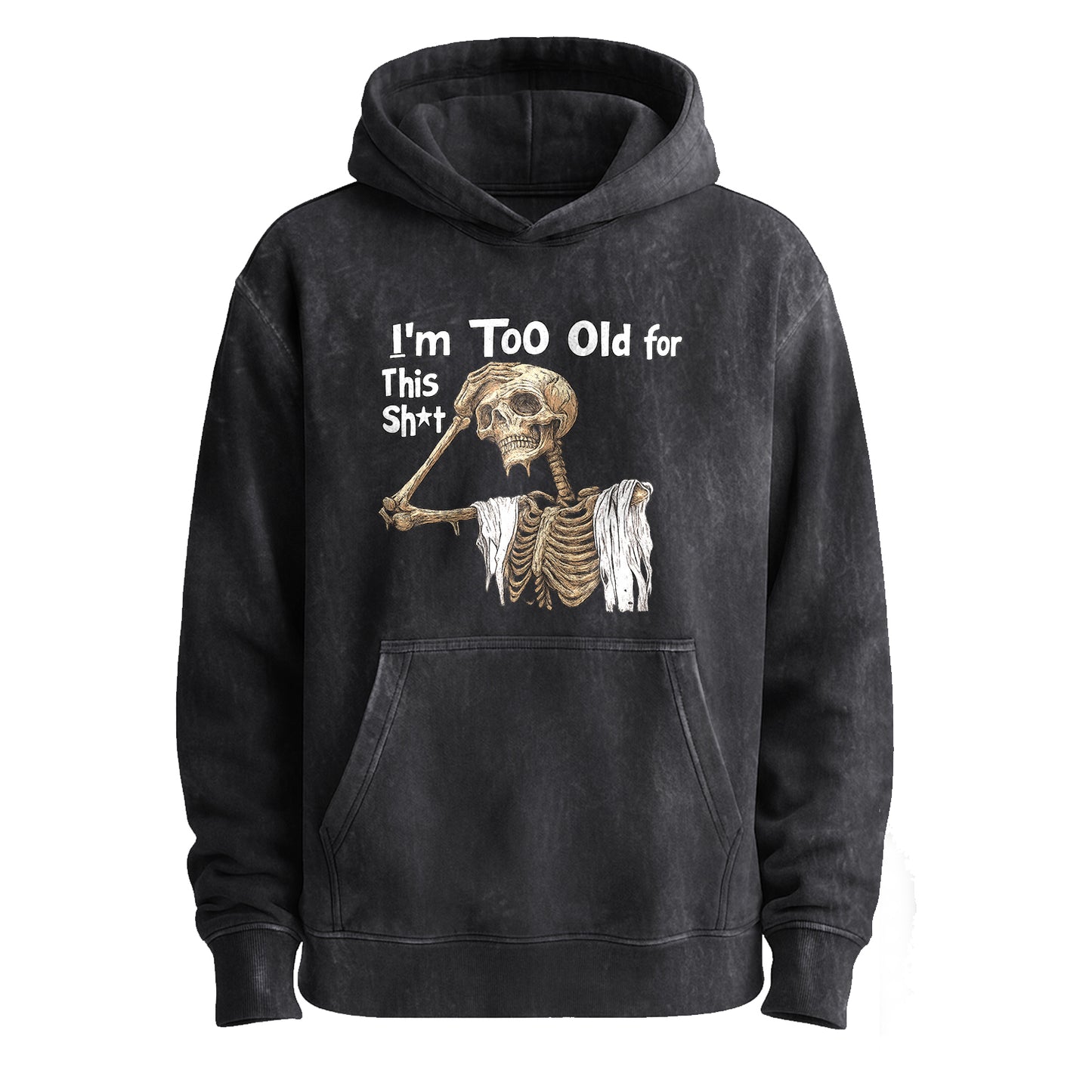 Prezzo normale $45.00 USD Vivi l'umorismo e percorri i chilometri con la felpa con cappuccio "I'm Too Old for This Sh*t Skeleton" di LouMark.