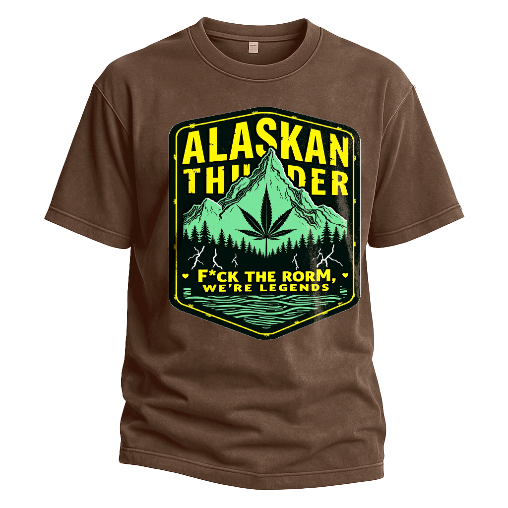 Regular price $26.99 USDWhen the wild howls and the skies crack open, legends rise. This “Alaskan Thunder” tee isn’t just a shirt — it’s a declaration. With a bold weed-leaf mountain graphic and the rebellious line “F*ck the storm, we’re legends,” this design honors those who live loud, ride the high, and never blend in. Whether you're lighting one under the stars or blazing trails through life, this one’s for you.