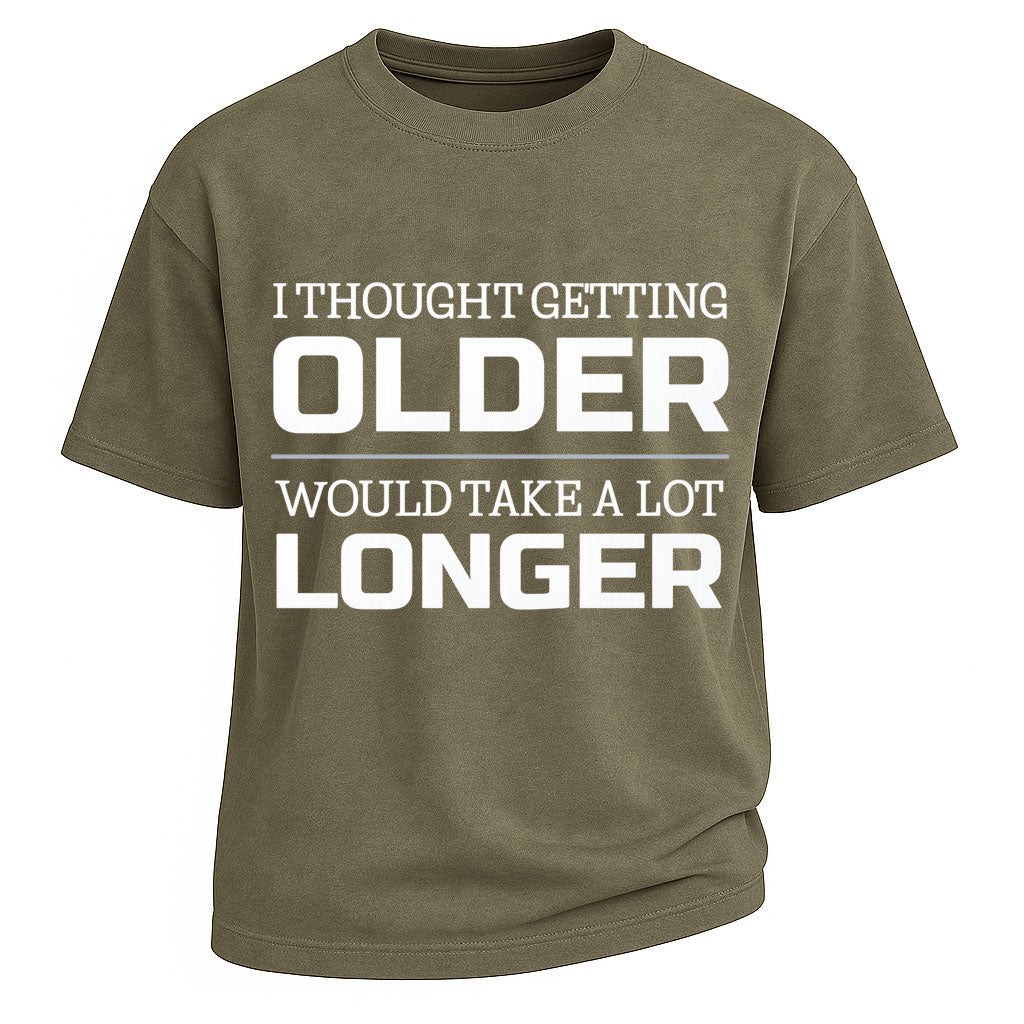 Regular price $22.99 USDAging sneaks up faster than a speeding ticket. This LouMark tee captures the universal midlife moment with dry humor and bold design. “I Thought Getting Older Would Take a Lot Longer” is printed loud and proud in clean, high-contrast lettering—because time flies, and so do your last remaining f***s.