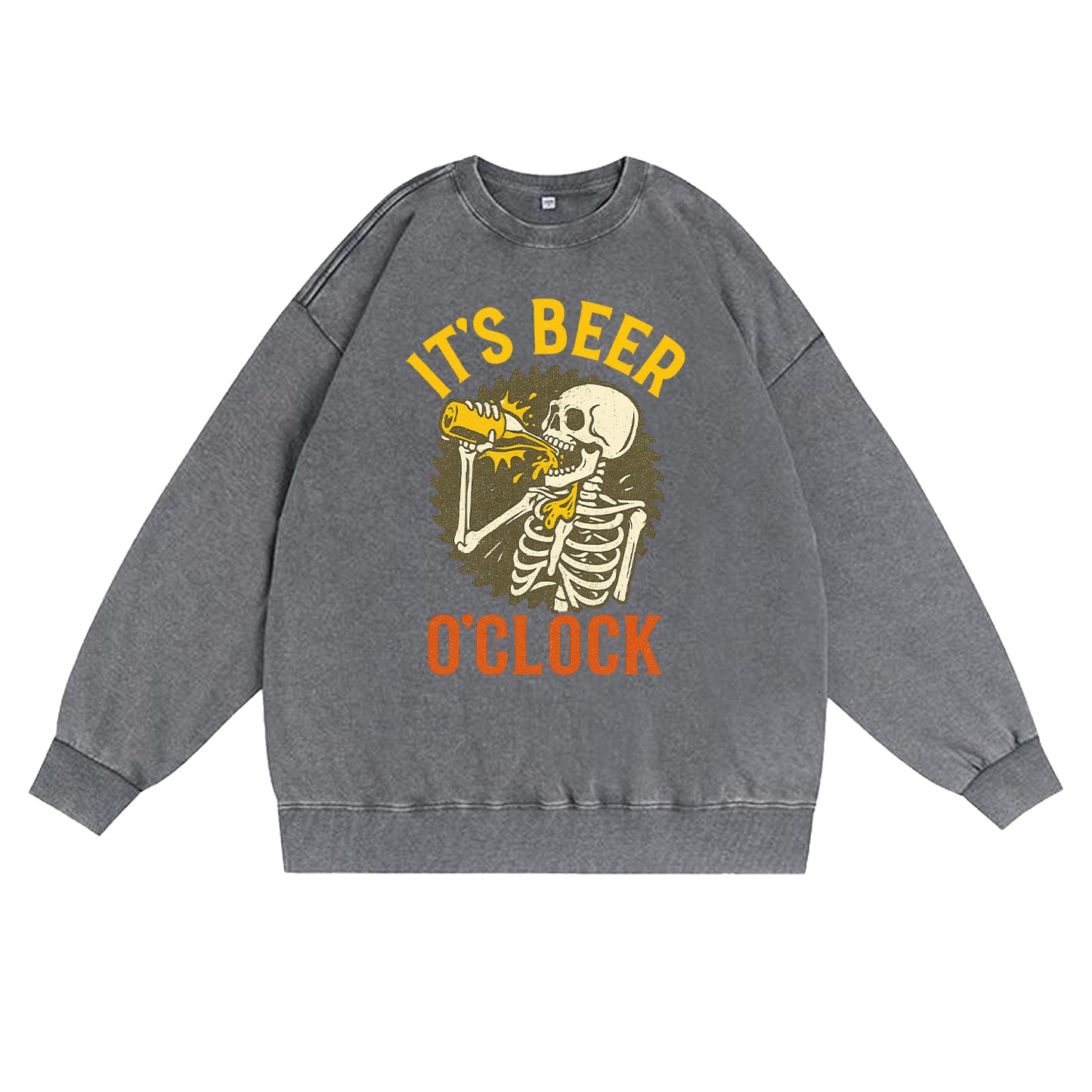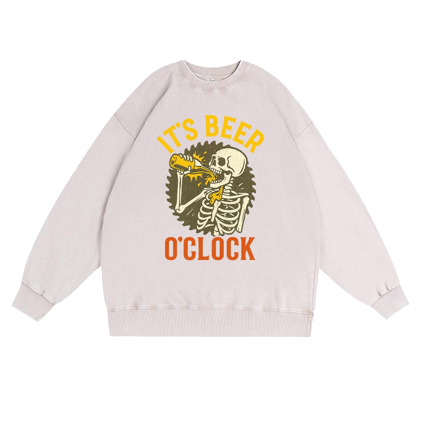 Regular price $45.00 USDCrack it open—good times on tap. This vintage-washed black sweatshirt features a retro graphic of a skeleton chugging a bottle with arched gold text “IT’S BEER” and bold orange “O’CLOCK.” Built from substantial 350g fleece (80% cotton / 20% polyester) for a soft, broken-in feel right out of the bag.