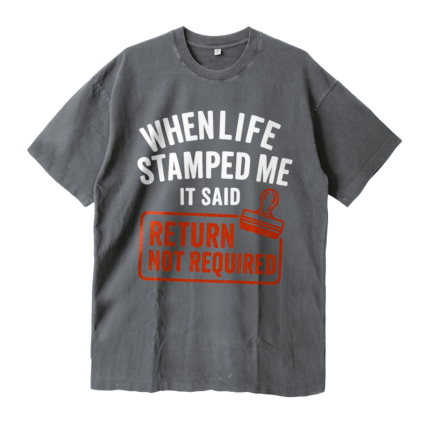Regular price $26.99 USDStamped with confidence. LouMark’s When Life Stamped Me Tee stacks bold white lettering—“WHEN LIFE STAMPED ME • IT SAID”—over a big orange stamp graphic that reads “RETURN NOT REQUIRED,” complete with a stamp icon. Cut from dense 260g cotton and washed for lived-in comfort, this relaxed tee brings a tough, tongue-in-cheek vibe to everyday wear.