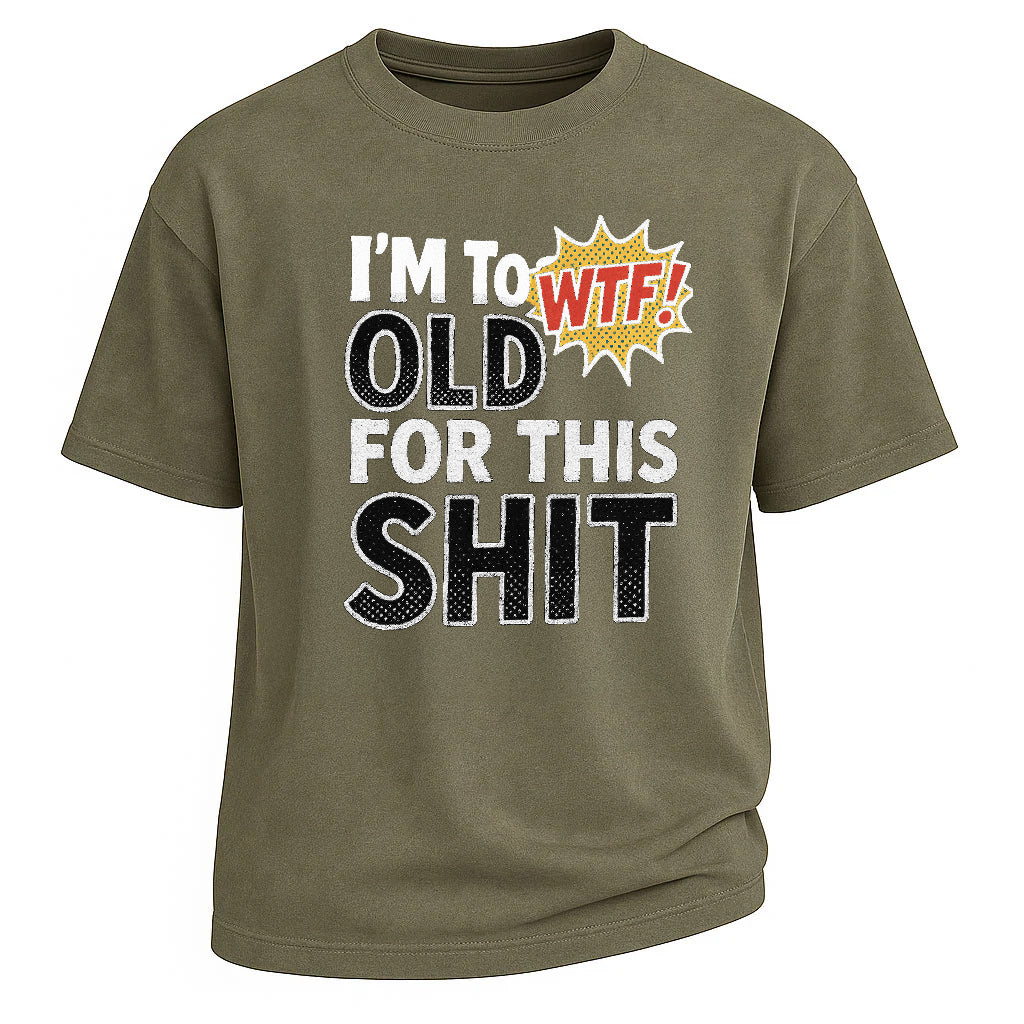 Regular price $22.99 USDWhen words fail, let attitude speak. This LouMark tee amps up the classic “Too Old For This Sh*t” slogan with a pop-art style “WTF!” explosion. Set on an army green backdrop, it’s made for men who’ve been through enough to say it like it is—and still keep their cool. A bold graphic for a bold personality.