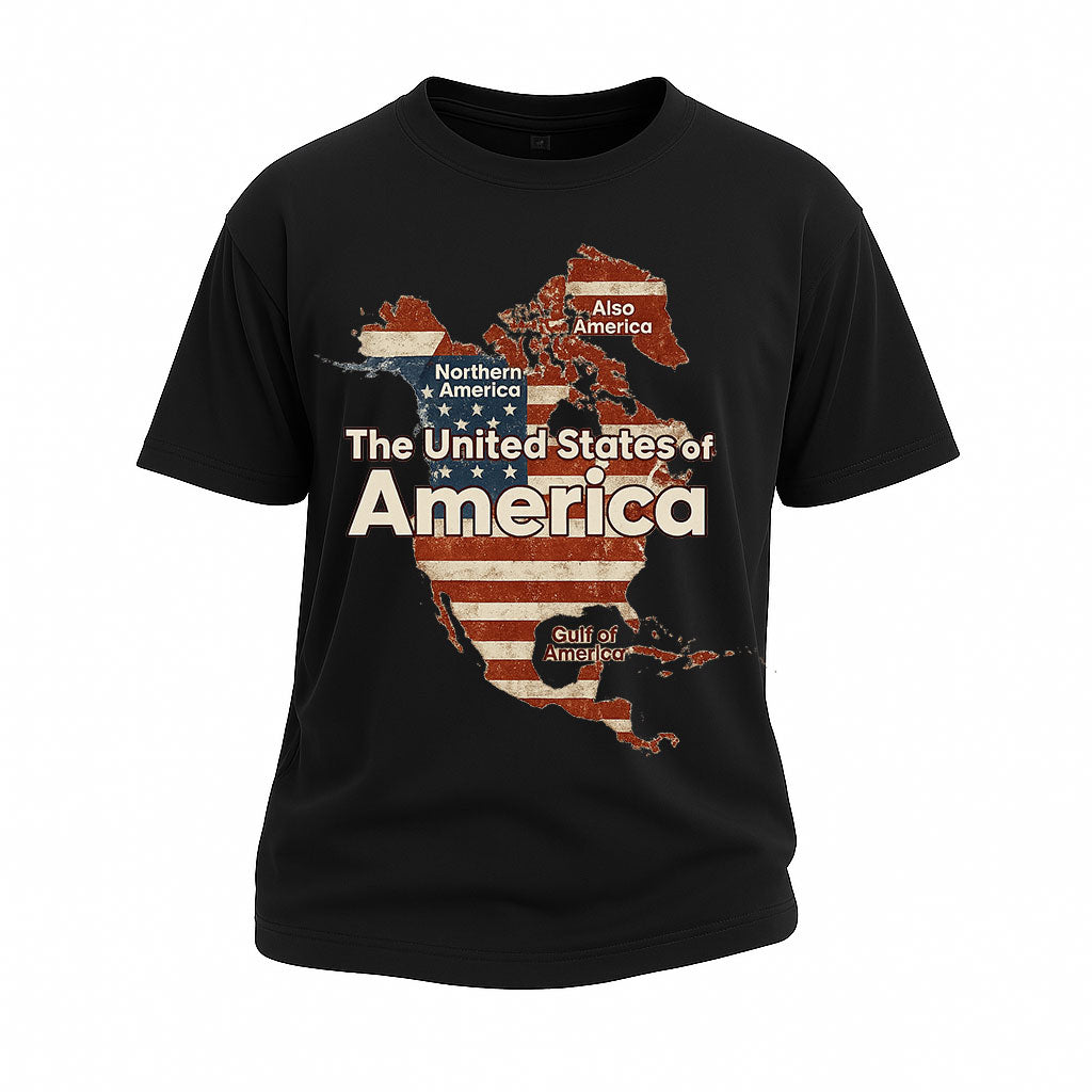 Preço Regular $22.99 USDGeography fail or patriotic joke? This T-shirt cleverly (and sarcastically) relabels all of North America as “America”—from "Also America" to "Gulf of America." Designed for those who love satire, bold humor, and a good conversation starter.