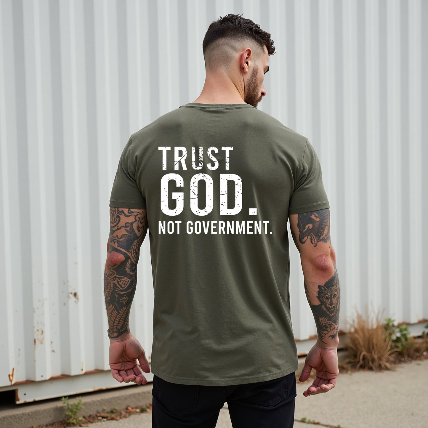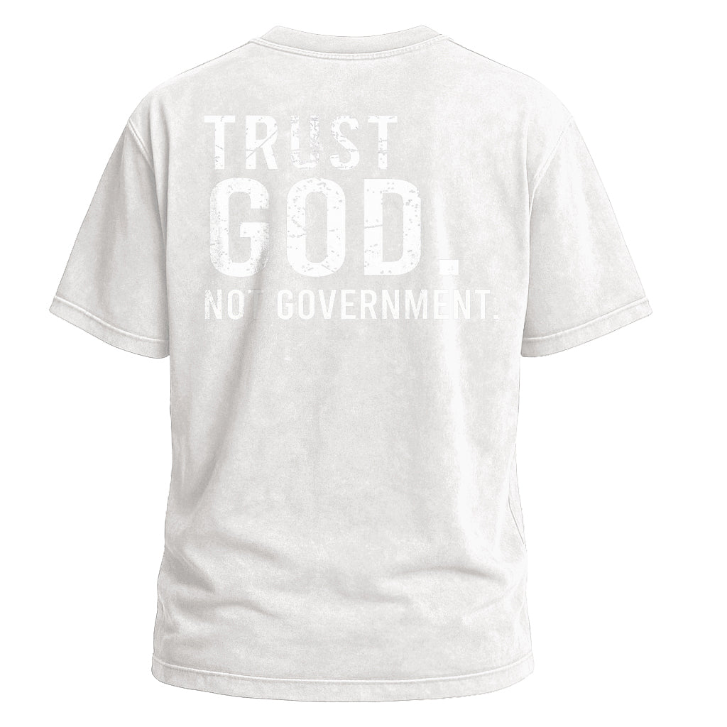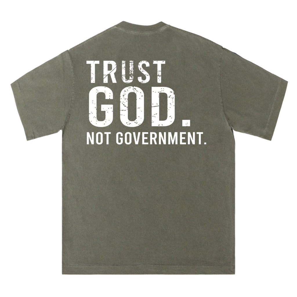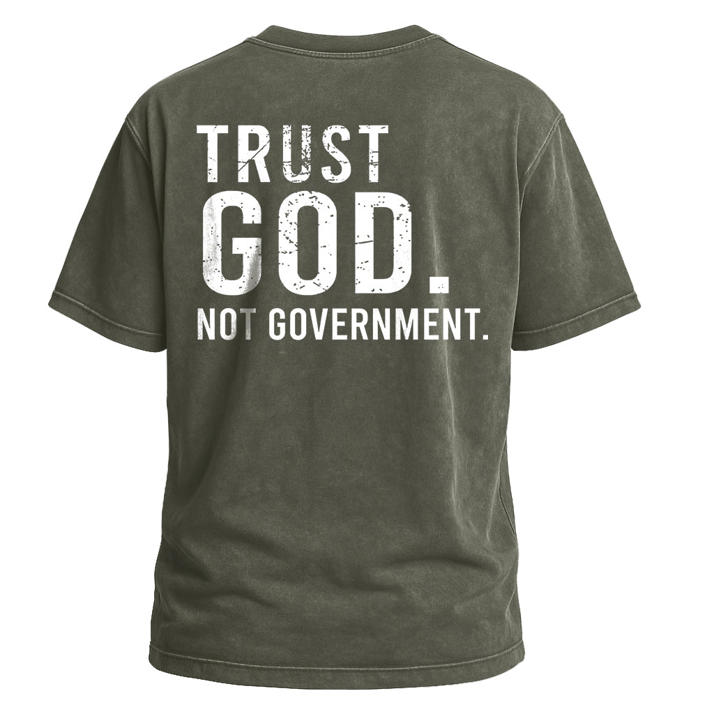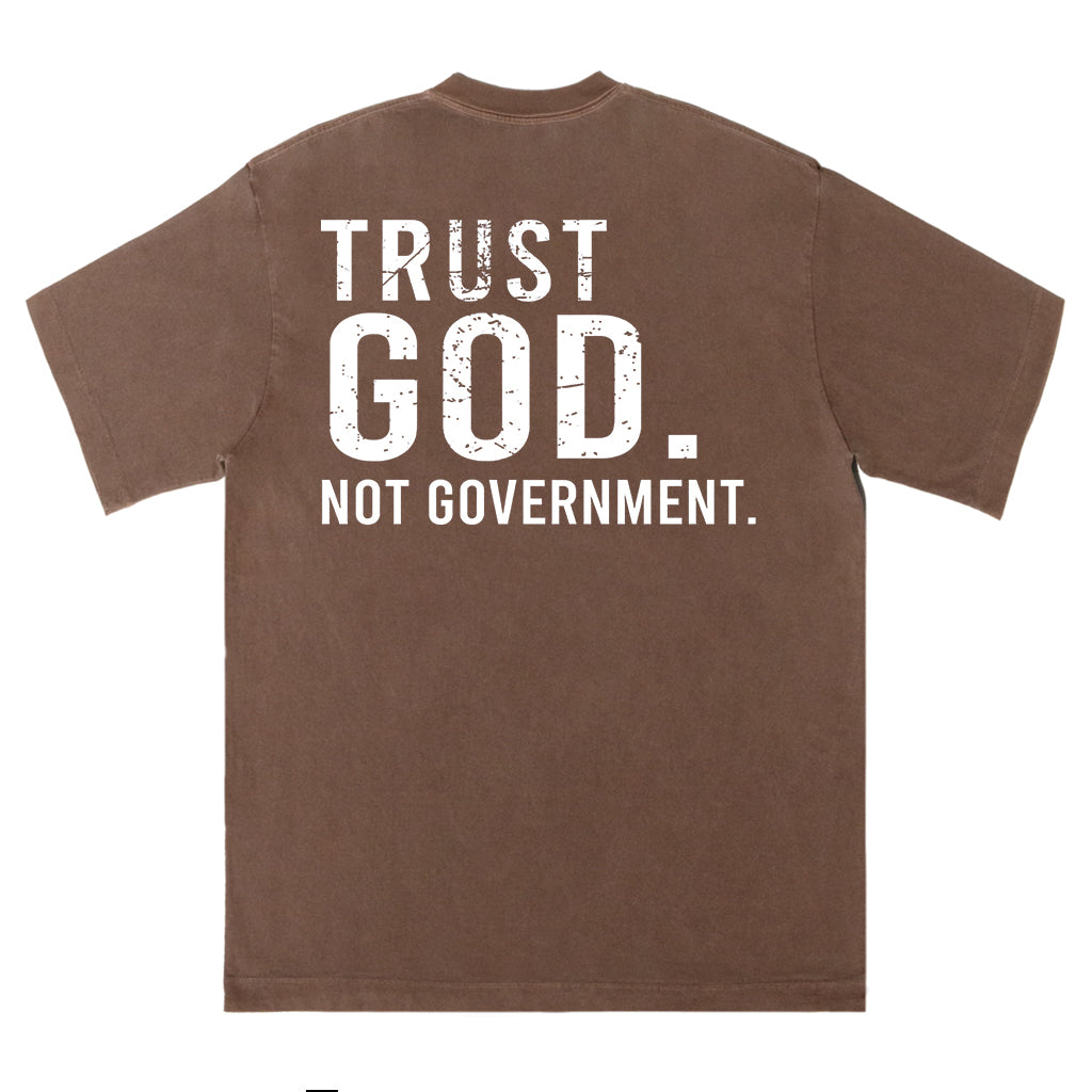 Preço Regular $26.99 USDMake a powerful statement with LouMark’s Trust God Not Government Tee. This washed brown shirt features bold white typography reading “TRUST GOD. NOT GOVERNMENT.” Crafted from 100% cotton, it offers comfortable wear with a clear message of faith and independence.