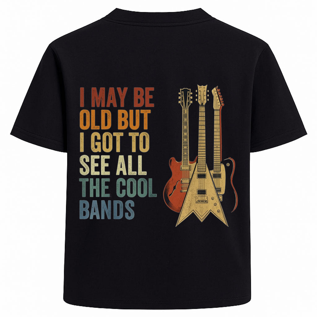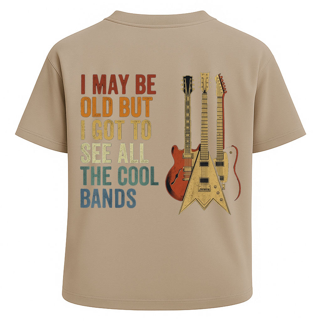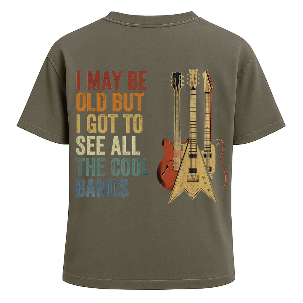 Preço Regular $26.99 USDCelebrate your rock ’n’ roll memories with LouMark’s “I May Be Old But I Got To See All The Cool Bands” oversized tee. Made from 260G heavyweight 100% cotton, this shirt offers unmatched comfort and durability. The oversized fit ensures a relaxed, laid-back style, while the colorful guitar graphic adds a bold vintage vibe. Perfect for music lovers, concert goers, and anyone who lived through the golden age of bands.